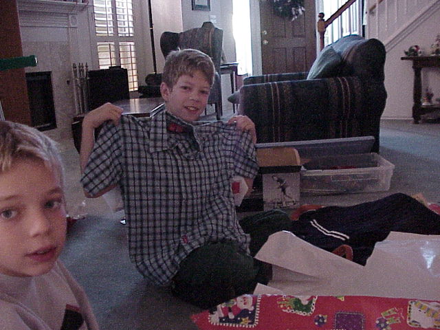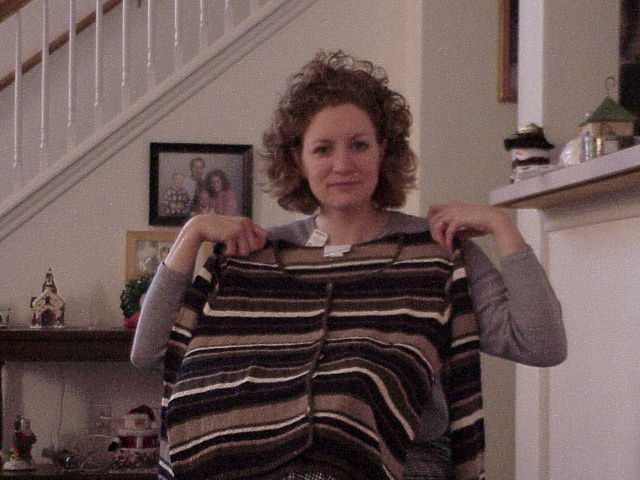 | A new sweater (Thanks, Jo!) Oh, the hair?? WE JUST GOT UP! GET OVER IT!!! |