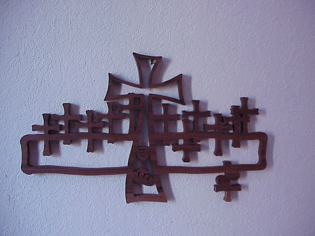 | A beautiful wood sculpture representing The Last Supper; Peter is the upside down cross; Thomas has his hand in Jesus' side. This came from Mom and Dad G. |